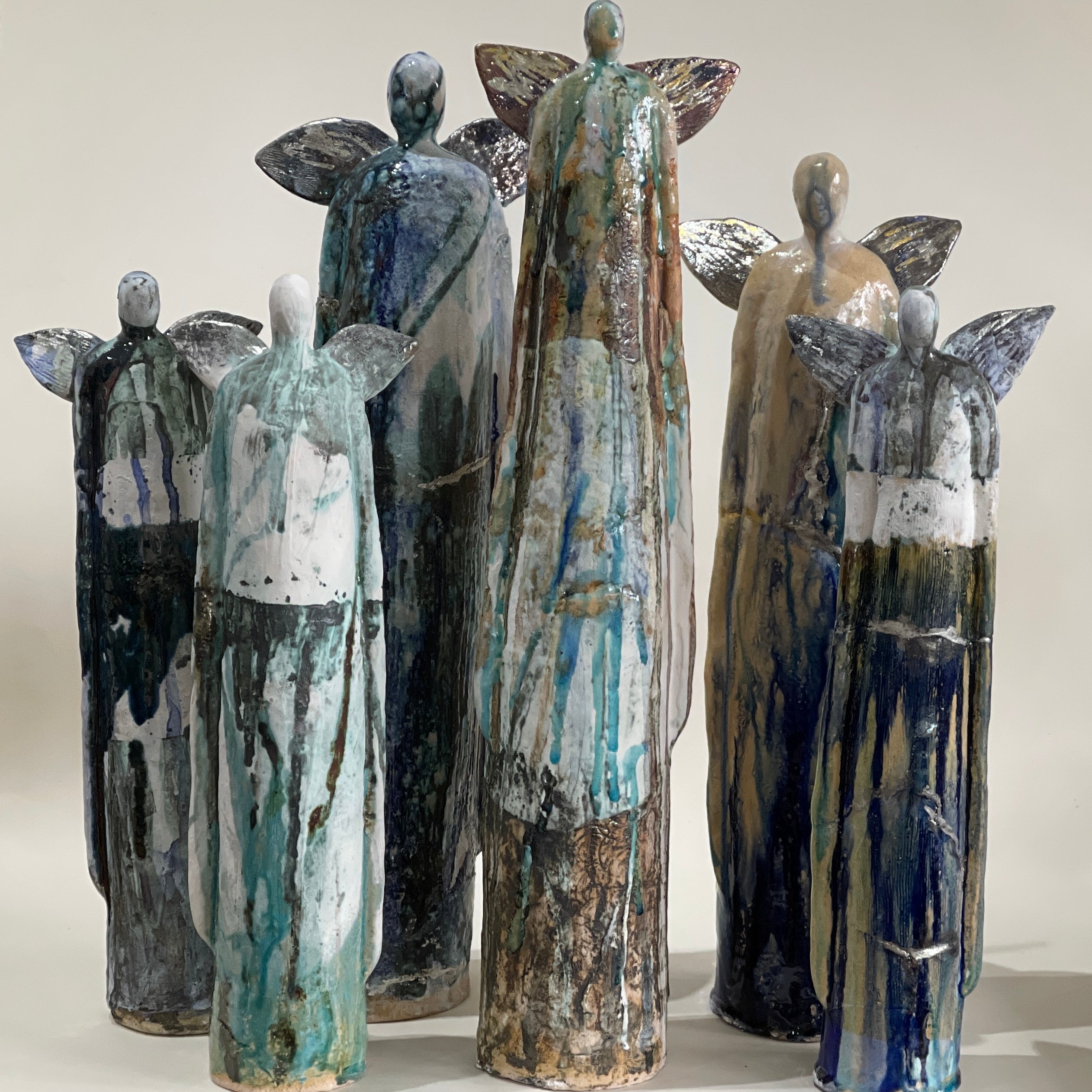 Elizabeth was invited to take up a residency at Newman House, which was once the home of Cardinal Henry Newman, within the grounds of Greycourt School in Richmond, Surrey. Whilst at Newman House, Elizabeth’s research for a new body of work based on Henry Newman’s ‘Dream of Gerontius, lead to many further succesful exhibtions including the collaboration with the Rambert Ballet Company and the Isleworth Actors Company who used Elizabeth’s angels as the inspiration for dance and dramatic works.