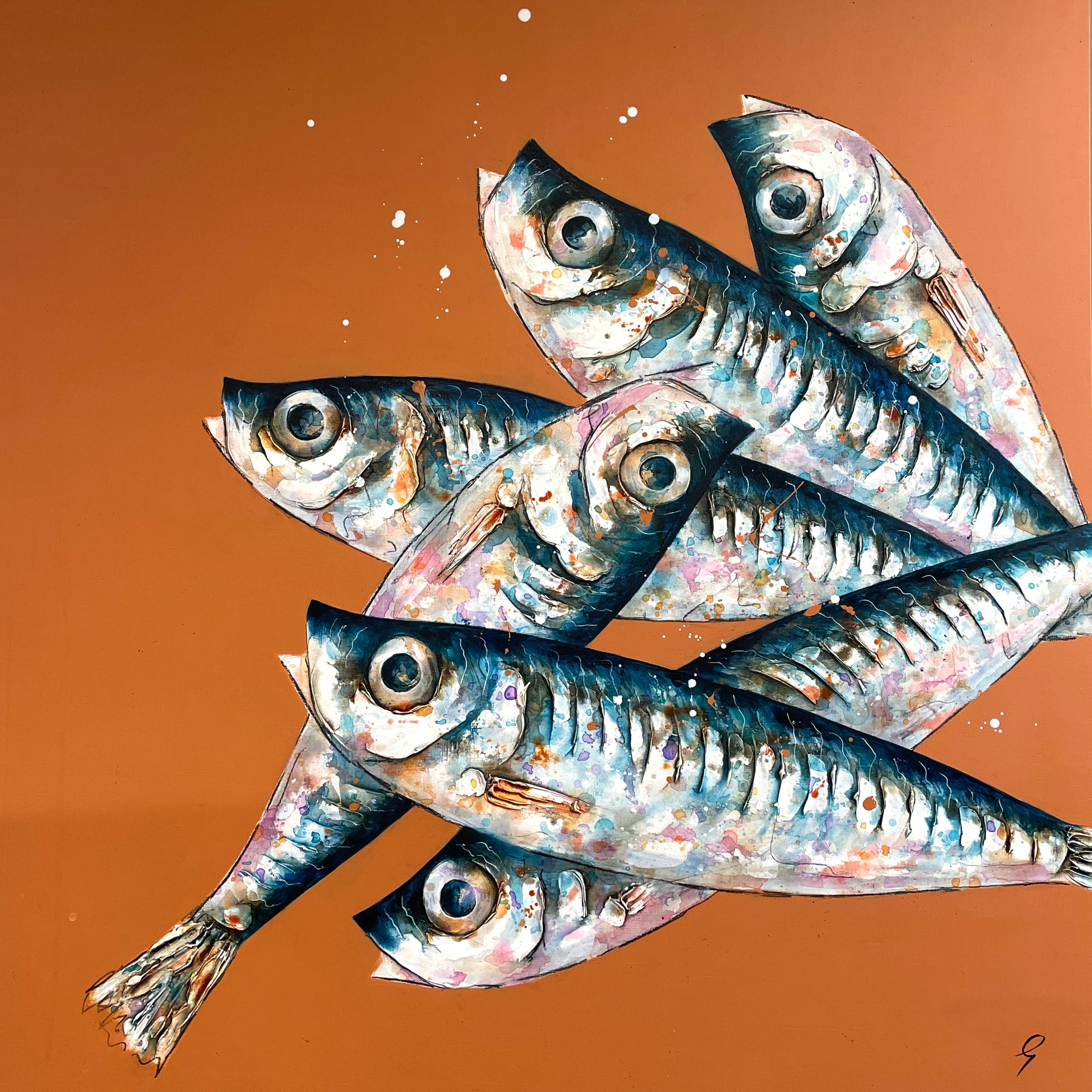 Experimentation is at the heart of Giles’ painting. Working pre-dominantly in oils his canvases take on other-worldly textures with the addition of acrylics, inks, spray paint, varnishes and anything else he can lay his hands on. He is inspired by the natural world and examines the hidden worlds of colour and texture found in nature’s close-up detail.